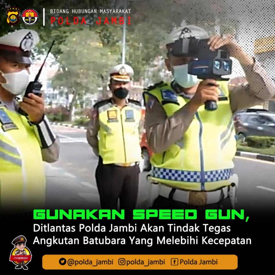 GUNAKAN SPEED GUN, DITLANTAS POLDA JAMBI AKAN TINDAK TEGAS ANGKUTAN BATUBARA YANG MELEBIHI KECEPATAN